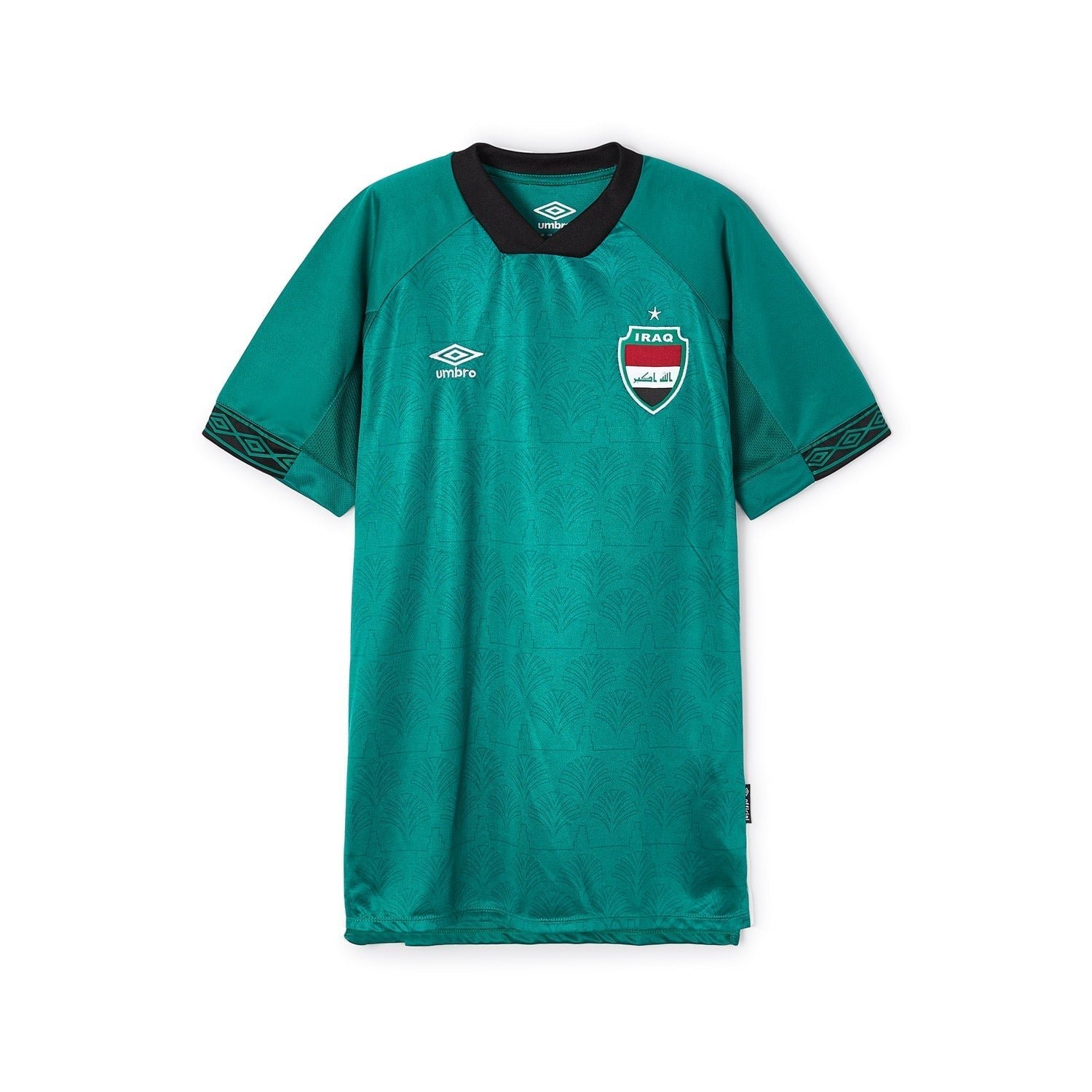 Official Iraq football shirts are available through federation retail channels where listed, Umbro retail channels where available, and authorised football kit sellers. The green home shirt should remain the primary seller because it carries the clearest national identity.